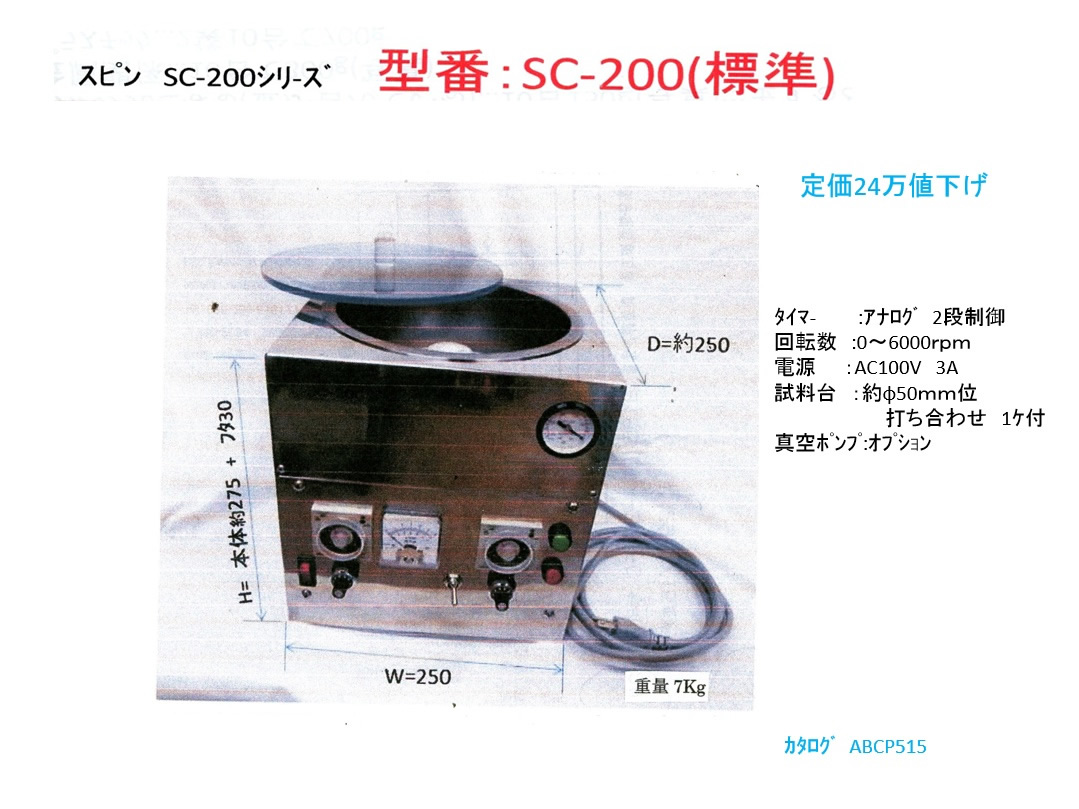 有限会社押鐘 TOP >> スピンコーター >> SC-200シリーズ